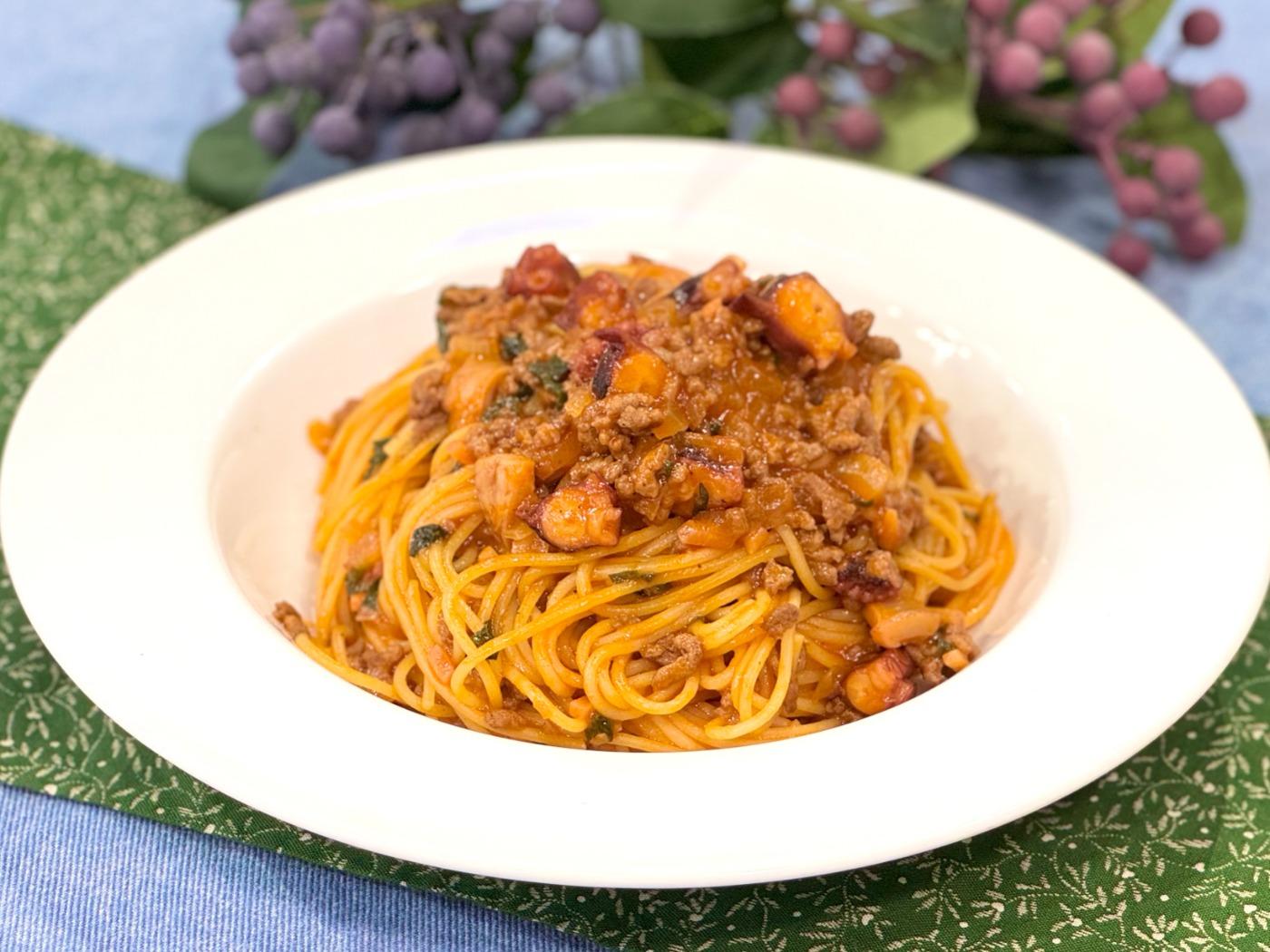 Wショウガで!タコと牛肉の和風ボロネーゼ