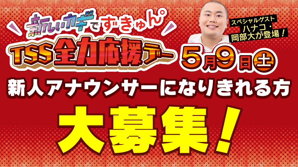 NOW OA 【警報・注意報】が発令されています 【地震速報】 テレビ新広島人権方針及びフジテレビ事案を踏まえた社内調査について 4月18日(土) 午後5時 西村キャンプ場【ゴールデンin北海道の完全版!パート1】 2026年1月に放送したゴールデンin北海道の完全版!未公開シーンを大幅に追加してお届け!今回は、タラの漁場として有名な「虎杖浜(こじょうはま)」の生たらこや広島県とゆかりある「北広島市」を開拓した偉人について学びます。 4月18日(土) よる6時30分 全力応援 スポーツLOVERS カープ&サンフレッチェをはじめとする地元広島の各種プロチームから、オリンピック出場をめざす“未来のトップアスリート”まで、「広島スポーツ愛」を熱く盛り上げる! 4月19日(日) あさ8時25分 そ~だったのかンパニー【百姓庵 幻の製塩法をよみがえらせた挑戦(山口県)】 昭和に一度途絶えた“幻の製塩法”に挑んだのは自然とともに生きる道を選んだ一人の男性。理想の海を求めて各地を巡りたどり着いた長門の海で生まれる塩に込めた想いとは。 4月20日(月) あさ9時50分 ひろしま満点ママ!! 「月曜リサーチ知っとった?」はGWに立ち寄りたい高速道路のSA・PAの魅力を大調査!朝限定のラーメンセットやドライブでの旅をより快適にするオススメグッズもご紹介! 4月20日(月) 午後3時42分 TSS ライク! 事件、事故、災害情報はもちろん、生活に役立つ経済情報から身近な地域の話題まで。広島に根差した「一日まるわかりニュース」をお届け▼広島天気予報 お金の専門家であるファイナンシャルプランナーの人気講師が決して“学校では教えてくれない”お金の『増やし方』、『貯め方』、『守り方』をわかりやすくお話します!! 幽霊となった母と残された家族の笑って楽しめるお葬式コメディ 4月18日(土) よる7時 芸能人が本気で考えた!ドッキリGP 大女優!野呂佳代の鼻毛抜き大作戦SP 左から)野呂佳代、東野幸治 今や大女優、野呂佳代!月10ドラマ『銀河の一票』共演中の黒木華の協力を得て、野呂に5年ぶりの鼻毛ドッキリ!▼大検証!ギャロップ毛利はドッキリで痩せられるのか?▼妖怪ドッキリ!織田信成・村重杏奈がトム・ブラウンの布川の“おなら神”の餌食に!? 4月18日(土) よる9時 土曜プレミアム・映画「ザ・スーパーマリオブラザーズ・ムービー」◆新作公開! © 2023 Nintendo and Universal Studios. All Rights Reserved. 任天堂とイルミネーションが贈る大ヒット作!双子の兄弟マリオとルイージが謎の土管で迷いこんだのは、魔法に満ちた新世界!はなればなれになってしまった兄弟が、絆の力で世界の危機に立ち向かう!二人の冒険の行く末は?最後には最新作の情報も!! つたえる つなげる ヒロシマ・ナガサキ被爆80年プロジェクト NEW 母親の遺体を放置 55歳の娘に執行猶予付きの有罪判決 福山市 17日 4/18(土) 10:30 ニュース 東広島市高屋町の火事 遺体は住人の74歳男性 広島 4/17(金) 20:20 ニュース 交通安全教室中に信号機の模型倒れる 女子児童が頭にけが 広島・三原市 4/17(金) 20:00 ニュース 気温40℃以上の日は「酷暑日」に決定 気象庁のホームページアンケートでも多くの支持を集める 広島 4/17(金) 19:27 暮らし・生活情報 『アーバンサイクルパークス広島』 18日グランドオープン! アンバサダー塚本恋乃葉さんが体験取材! 4/17(金) 19:22 暮らし・生活情報 【広島・府中町】2028年度中にも『市制移行』を目指す 町民は?町長は?議会は? 現状をツイセキ! 4/17(金) 19:20 ニュース 消火栓ボックスの器具盗難事件 新たに27カ所で被害確認 換金目的か 広島・福山市 4/17(金) 19:15 ニュース 男子生徒が自殺した問題 教員による不適切な指導を認める調査結果を受け 県議会「再発防止求める」 広島 4/17(金) 19:09 ニュース 【わたしの里山】祖父母の「ブドウ園」を継ぐために移住してきた孫(女性)に密着!広島・三原市大和町蔵宗 4/17(金) 18:47 暮らし・生活情報 福山港内港の埋め立て事業化困難 国が判断 広島・福山市 4/17(金) 18:44 暮らし・生活情報 養殖カキの大量死問題 2026年1月以降は「へい死(大量死)」確認なし 広島 4/17(金) 18:43 暮らし・生活情報 サンフレッチェ広島の礎を築く 今西和男さん(85)の告別式 220人が参列し惜しむ声 広島 4/17(金) 18:43 スポーツ ニュース一覧 公式YouTubeチャンネル広島ニュース TSS お住いの地域を選択してください 広島市中区 広島市東区 広島市南区 広島市西区 広島市安佐南区 広島市安佐北区 広島市安芸区 広島市佐伯区 呉市 竹原市 三原市 尾道市 福山市 府中市 三次市 庄原市 大竹市 東広島市 廿日市市 安芸高田市 江田島市 安芸郡府中町 安芸郡海田町 安芸郡熊野町 安芸郡坂町 山県郡安芸太田町 山県郡北広島町 豊田郡大崎上島町 世羅郡世羅町 神石郡神石高原町 避難情報 -- 警報・注意報 -- 土砂災害警戒情報 -- 地震情報 -- 津波情報 -- 避難所情報はこちら 警戒レベルの色分けについて※地震情報は対象外 TSS天気予報 「防災タイムライン」を作成しよう! 広島県土砂災害危険度情報 【動画】南海トラフ地震に備えよう 今すぐ買うべき『防災グッズ』とは? 「まず3