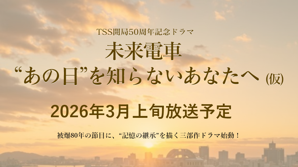 NOW OA 【警報・注意報】が発令されています 【地震速報】 テレビ新広島人権方針及びフジテレビ事案を踏まえた社内調査について 今年、わたしたちは開局50年。「またTSSがなんかやってるよ」なんて笑われて喜んじゃうような、そんなやんちゃな遊び心を、これからも。いつまでも。あなたのそばで。 1月9日(金) 午後3時42分 TSS ライク! 事件、事故、災害情報はもちろん、生活に役立つ経済情報から身近な地域の話題まで。広島に根差した「一日まるわかりニュース」をお届け▼広島天気予報 被爆から80年という時の流れの中で、現代を生きる若者たちが、広島に刻まれた記憶とどのように向き合い、次の世代に語り継いでいくべきか-その葛藤や戸惑いを丁寧に描く 「行こうかな、しまね」島根へ行ってみたくなる、をたっぷり詰め込みました。広島での皆様との出会いが島根への旅へと続きますように。 あつあつの湯気!美しい黄金色!ホクホク、ねっとり!甘さがたまらない!さいまいも好きが存分に満喫できるフードフェス!さまざまな品種の焼きいもの食べ比べや、進化するさつまいもグルメ&スイーツを一挙に集め、全国各地から選りすぐりの人気店が16店舗集結! 全国で活躍しているファイナンシャルプランナーの先生によるマネーセミナーを開催します。資産形成、最近よく聞く新NISAやiDeCo、住宅ローン、保険のことまで、幅広く解説してくれます。 戦争の悲劇を風化させず、平和の大切さを若い世代につなげていく―。その私たちの思いを「記憶にも記録にも残す」形にするために、広島の学生たちとともにギネス世界記録に挑戦します。 就活生のためのオフィスツアーを1月&2月に開催!ただいま応募受付中!1月開催分は1/13(火)締切です 【急募】報道部ではアルバイト・パートを募集中です!メディア業界へ興味のある方は是非! 1月9日(金) よる7時 ウワサのお客さま▼二子山部屋vsちゃんこ400人前▼業スー食材で満腹ダイエット 左から)川島明(麒麟)、サンドウィッチマン(伊達みきお、富澤たけし) ◆二子山部屋でウワサのお客さま!福岡県で開催したちゃんこイベントに完全密着!規格外の総重量約300kgのちゃんこを作るための下準備とは…!?◆これまで4500人以上をやせさせたダイエット先生がオススメする、業スーダイエット食材神セブンをご紹介! 1月9日(金) よる9時 最強パワースポット旅▼橋本環奈&宮川大輔!伊勢神宮に柳沢慎吾!富士山にアレン様 橋本環奈が宮川大輔と共に地元福岡へ凱旋!藤井隆・アレン様・オカリナ異色のトリオが富士山周辺を、柳沢慎吾・上地雄輔・岡田紗佳が伊勢神宮と共に巡ると更にご利益が受けられる最強開運ルートをご紹介!個性豊かな面々がパワースポットを巡る2時間! つたえる つなげる ヒロシマ・ナガサキ被爆80年プロジェクト 9日公開 映画「架空の犬と嘘をつく猫」広島出身・森ガキ侑大監督が30年間の家族の嘘と絆を描いた物語 1/8(木) 20:30 暮らし・生活情報 超小型電気自動車「ミボット」開発の3年に密着 東広島から世界へ フォーブス誌も注目 遂に納車1号 1/8(木) 20:00 ニュース 「従業員が800万円持ち逃げ」とウソ 言葉巧みに知人女性から現金をだまし取った無職男を逮捕 1/8(木) 19:00 ニュース 縮景園前のT字路の交差点 横断中の高齢女性(88)が右折車にはねられ死亡 広島 1/8(木) 18:57 ニュース 【牡蠣】『くれオイスターランド』 9日から期間限定でオープン! ピンチのカキ生産者が奮起! 1/8(木) 18:42 暮らし・生活情報 【超速報】春高バレー3回戦 広島県勢男女とも敗退 銀河学院は大阪国際に 崇徳は清風に接戦の末 1/8(木) 18:32 スポーツ 新たに女子児童4人にわいせつ行為 元小学校教師「私がしたことに間違いありません」起訴内容認める 広島 1/8(木) 18:23 ニュース 【カープ】期待のルーキーたちが合同自主トレ プロの世界を体感! シャトルランで倒れこむ選手も… 1/8(木) 17:45 スポーツ サンフレ 新加入5選手が会見 昨シーズン公式戦13ゴール 湘南から移籍の鈴木選手「得点能力に自信」 1/8(木) 17:42 スポーツ サンキューベイビー#111 田中 心結(みゆ)ちゃん 「優しい心で人と関わって幸せを結んでほしい」 1/8(木) 17:40 暮らし・生活情報 元小学校教師に懲役1年求刑 「性癖に基づく常習的犯行」 学校などで女児のスカート内を24回盗撮 広島 1/8(木) 17:28 ニュース 三次市の「日光寺」で滝開き 気温0度、水温1度の中 一年の無病息災を願う寒行 1/8(木) 11:59 暮らし・生活情報 ニュース一覧 公式YouTubeチャンネル広島ニュース TSS お住いの地域を選択してください 広島市中区 広島市東区 広島市南区 広島市西区 広島市安佐南区 広島市安佐北区 広島市安芸区 広島市佐伯区 呉市 竹原市 三原市 尾道市 福山市 府中市 三次市 庄原市 大竹市 東広島市 廿日市市 安芸高田市 江田島市 安芸郡府中町 安芸郡海田町 安芸郡熊野町 安芸郡坂町 山県郡安芸太田町 山県郡北広島町 豊田郡大崎上島町 世羅郡世羅町 神石郡神石高原町 避難情報 -- 警報・注意報 -- 土砂災害警戒情報 -- 地震情報 -- 津波情報 -- 避難所情報はこちら 警
