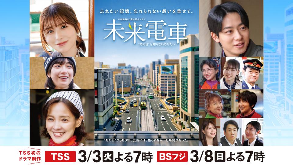 NOW OA 【警報・注意報】が発令されています 【地震速報】 テレビ新広島人権方針及びフジテレビ事案を踏まえた社内調査について 今年、わたしたちは開局50年。「またTSSがなんかやってるよ」なんて笑われて喜んじゃうような、そんなやんちゃな遊び心を、これからも。いつまでも。あなたのそばで。 2月7日(土) 午前11時20分 釣りごろつられごろ 思わぬ珍シーンも!?泳がせ釣りで狙うヒラメ~広島県・江田島沖~ 2月7日(土) 午後5時 西村キャンプ場【三次のごちそう!海のわに】 【芸備線沿線キャンプ旅!】旅2日目、芸備線で下車したのは三次市・神杉駅。駅周辺を散策していると、「これ黒豆よ」と現れた一人の男性。ついに食材ゲット!…かと思いきや、男性はなぜか渋りはじめ…?さらに西村もトリコになった、超貴重なわにグルメとは? 2月7日(土) よる6時30分 全力応援 スポーツLOVERS 今週のスポラバは、カープの春季キャンプ地日南から最新情報をお届け! さらにWBC日本代表の小園海斗選手を直撃!サンフレッチェはJ1百年構想リーグが開幕! 2月7日(土) 深夜1時50分 日向坂46 竹内希来里の地元できらる 未公開シーンを数多く届けてきた「じもきら」。これまでのGoPro映像に加え、今回も“メインカメラによる特別アレンジ版”を初公開!まさに「見たことない角度」。第3弾はタワレコやむすびのむさしでの未公開シーンをプレイバック 2月9日(月) あさ9時50分 ひろしま満点ママ!! 「月曜リサーチ知っとった?」は閉城間近の広島城を大調査!学芸員と巡る天守やかつての城下町に新発見▼かわいいアニマル登場▼今週のお天気も詳しくお伝え! 2月9日(月) 午後3時42分 TSS ライク! 事件、事故、災害情報はもちろん、生活に役立つ経済情報から身近な地域の話題まで。広島に根差した「一日まるわかりニュース」をお届け▼広島天気予報 被爆から80年という時の流れの中で、現代を生きる若者たちが、広島に刻まれた記憶とどのように向き合い、次の世代に語り継いでいくべきか-その葛藤や戸惑いを丁寧に描く あつあつの湯気!美しい黄金色!ホクホク、ねっとり!甘さがたまらない!さいまいも好きが存分に満喫できるフードフェス!さまざまな品種の焼きいもの食べ比べや、進化するさつまいもグルメ&スイーツを一挙に集め、全国各地から選りすぐりの人気店が16店舗集結! 戦争の悲劇を風化させず、平和の大切さを若い世代につなげていく―。その私たちの思いを「記憶にも記録にも残す」形にするために、広島の学生たちとともにギネス世界記録に挑戦します。 就活生のためのオフィスツアーを1月&2月に開催!ただいま応募受付中!2月開催分は2/9(月)ひる12:00締切です 2026年シーズンの開幕へ向け、鯉戦士たちが日南にキャンプイン!2月2日(月)~7日(土)の間、TSSの番組で選手のインタビューや練習風景など、カープ日南春季キャンプの模様を現地からお届けします。 【急募】報道部ではアルバイト・パートを募集中です!メディア業界へ興味のある方は是非! 2月7日(土) よる7時 芸能人が本気で考えた!ドッキリGP マッサマンVSこっちのけんと激突SP 左から)柴田英嗣(アンタッチャブル)、若槻千夏、東野幸治、小池栄子 ▼こっちのけんと「ドッキリGP」初登場“マッサマンとの対決”喜んでくれる?▼ヒーロードッキリ【完結編】ちょっぴり問題児なヒーローも誕生…!▼秒でドッキリではGENIC・増子敦貴、武井壮、タイムマシーン3号の関太と山本浩司が餌食に!? 2月7日(土) よる9時 土曜プレミアム・タイムレスマン▼祝!新体制1周年★超緊張!木村拓哉とサシトーク timeleszの地上波初バラエティー『タイムレスマン』が、いよいよ2度目の全国放送&ゴールデンタイム進出!今回SPゲストとして木村拓哉が登場!1対1のトークに挑戦!また木村が用意してくれた「東京スカイツリー」で“新体制1周年”を盛大にお祝い! TSS×衆議院選挙2026 つたえる つなげる ヒロシマ・ナガサキ被爆80年プロジェクト 広島駅前に「中央図書館」4月1日オープン 映像文化ラブラリー、郷土資料館サテライトも 2/6(金) 18:57 暮らし・生活情報 「子育てに優しいまち」へ 松井市長「決意表明と受け止めてほしい」 広島市が過去最大規模の新年度予算案 2/6(金) 18:52 ニュース 安全帯使用せず高所で作業か 世羅町のリサイクル関連施設で転落事故 44歳男性が意識不明の重体 広島 2/6(金) 18:45 ニュース 衆院選【広島4区】自民・維新前職の与党直接対決に国民の新人が参入 三つ巴の激しい戦い 選挙戦は佳境に 2/6(金) 18:25 ニュース 【広島あの日のきょう】福山市主婦殺害事件(2001年)20年後に男を逮捕、裁判はDNA型鑑定が争点に 2/6(金) 18:01 ニュース カープ日南キャンプ 平川蓮選手の「武器はバットだけじゃない!」 山内泰幸の「ずきゅん。」 2/6(金) 17:57 スポーツ 大だるまが名物!三原神明市を西田杏優アナとそぞろ歩き だるまくじ、だるま行列…春はもうすぐ! 2/6(金) 17:52 暮らし・生活情報 衆議院選挙の投開票日は8日 街頭で投票呼びかけ 積雪の予報に期日前投票の活用も 広島 2/6(金) 17:48 ニュース カープ日南キャ