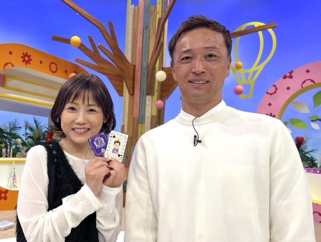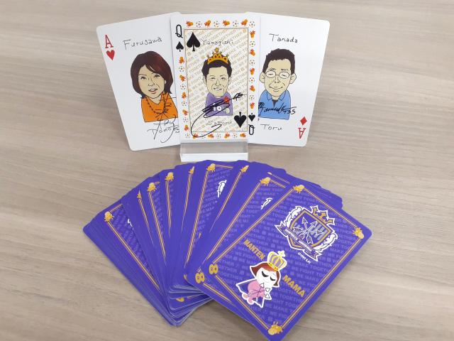 森保一監督率いる当時のサンフレッチェの選手と、満点ママ出演者の似顔絵が描かれたトランプです★