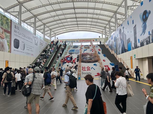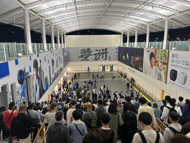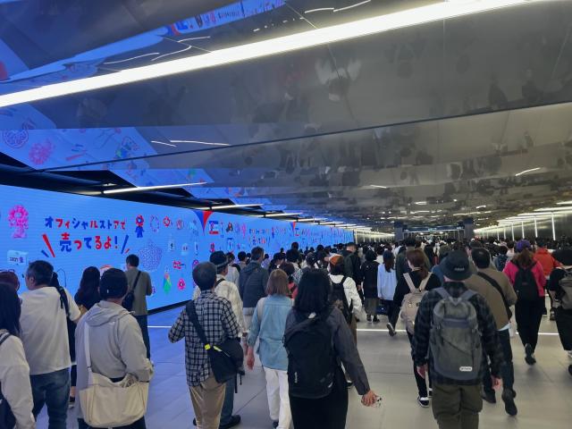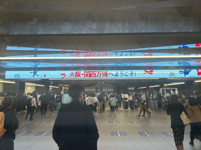 万博会期中、改札外のコンコース部分にはおもしろい仕掛けも。