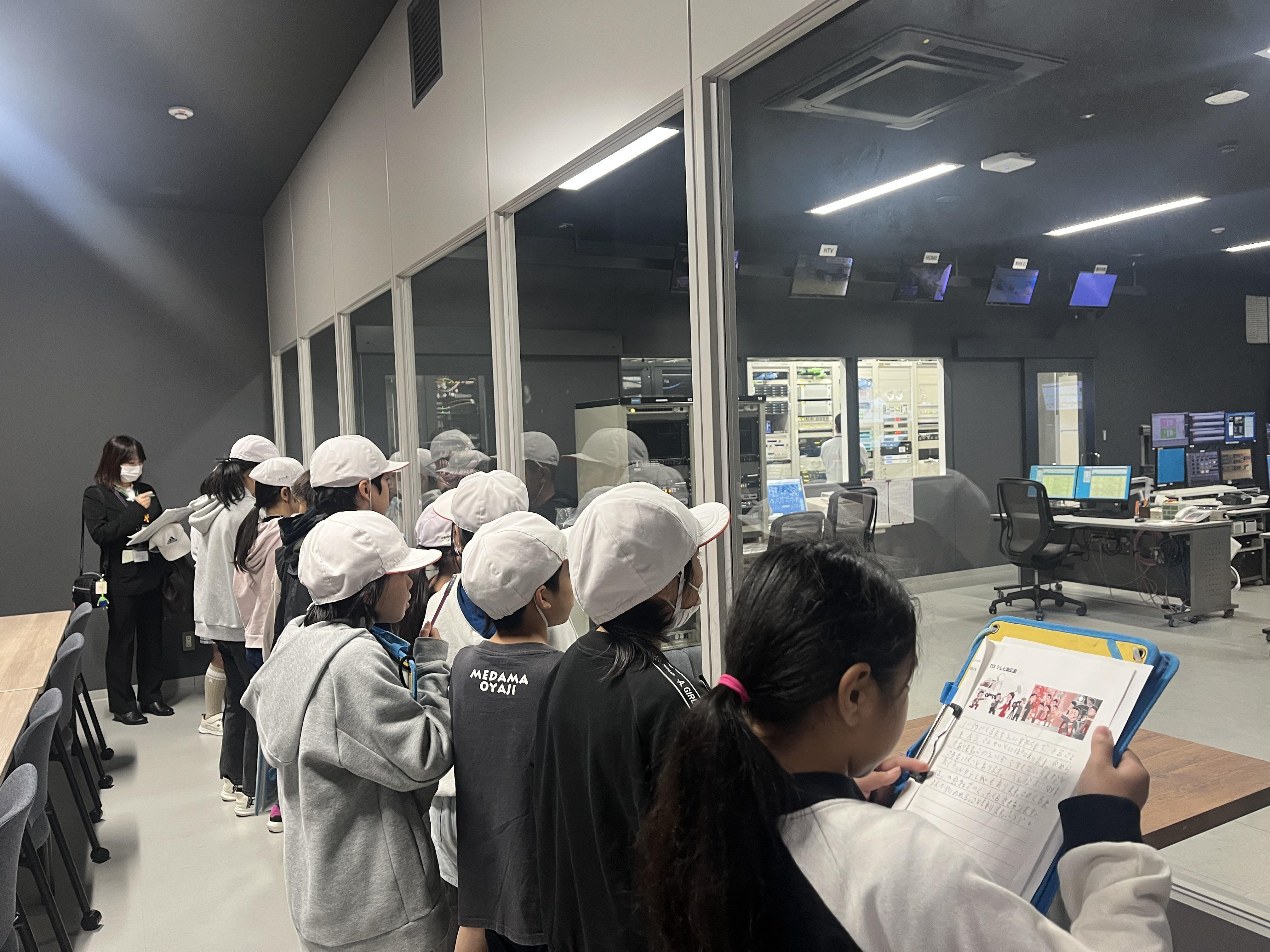 私たちが説明している時、皆さんが真剣に聞いているのが伝わってきました。そして、主調整室、SNG車さらにはスタジオ見学では、興味津々で目を輝かせていましたね。生放送中のみんなで秒読みはいい経験でしたね。配りものや感想文を集めることも手伝ってもらい、助かりました。
