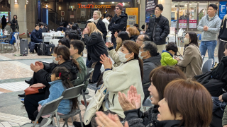 広島の玄関口・広島駅に直結した会場は、常に多くの人が行き交う絶好のロケーション。その前を通る人たちがふと足を止め、次々と試合に見入っていく様子が印象的で、選手たちは歓声に包まれながらプレー!