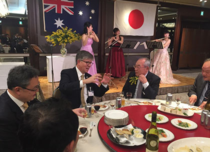 ポークのユーカリ蜂蜜焼き、オージービーフの炙り焼きなどの料理を楽しみながらテーブルごとに会話の花が咲いていました。パーティの最後は青山裕大副会長が、マツダ車が世界の中でも特にオーストラリアで人気が高いことに触れ、「日豪関係を広島から盛り上げていきましょう」と締めくくりました。