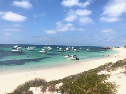 二日目からはゴールドコーストに住んでいる友達が私に会いにパースまで来てくれて、3人でパースの沖にある島、ロットネスト島へ泳ぎに行きました。季節は日本の真逆で、その日は38度ありとても暑い日でしたが、エメラルドグリーンの海に、ロットネスト島ににしか生息していない可愛い動物クォッカにも会えて、最高な1日でした。