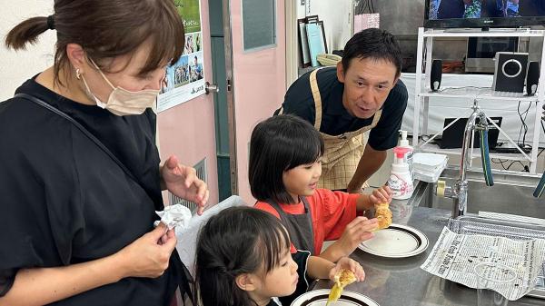 ④ ③を片栗粉の器に取り出して全体に片栗粉をまぶしておく。熱さが取れたら4つに分けておく。