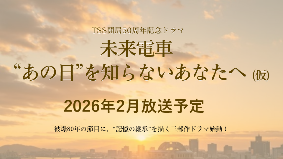 NOW OA 【警報・注意報】が発令されています 2024.03.29 10:09 更新 いよいよ開幕!!カープグルメで目指せ日本一! 2024.03.22 10:09 更新 あなたはテイクアウト派?お店派?旬の花見グルメ! 2024.03.08 10:00 更新 春休み目前!一足早い海外気分満喫グルメ 2024.03.01 10:20 更新 あなたは肉派?魚派?リーズナブルに楽しむご褒美ランチ! 2024.02.16 17:44 更新 ひろしま料理人コンクール10回記念 地元愛強!!料理人 受賞者たちの今!! ~洋食&和食編 2024.03.29 10:09 更新 いよいよ開幕!!カープグルメで目指せ日本一! 2024.03.22 10:09 更新 あなたはテイクアウト派?お店派?旬の花見グルメ! 2024.03.08 10:00 更新 春休み目前!一足早い海外気分満喫グルメ 2024.03.01 10:20 更新 あなたは肉派?魚派?リーズナブルに楽しむご褒美ランチ! 2024.02.16 17:44 更新 ひろしま料理人コンクール10回記念 地元愛強!!料理人 受賞者たちの今!! ~洋食&和食編 2024.03.29 10:09 更新 いよいよ開幕!!カープグルメで目指せ日本一! 2024.03.22 10:09 更新 あなたはテイクアウト派?お店派?旬の花見グルメ! 2024.03.08 10:00 更新 春休み目前!一足早い海外気分満喫グルメ 2024.03.01 10:20 更新 あなたは肉派?魚派?リーズナブルに楽しむご褒美ランチ! 2024.02.16 17:44 更新 ひろしま料理人コンクール10回記念 地元愛強!!料理人 受賞者たちの今!! ~洋食&和食編 2024.03.29 10:09 更新 いよいよ開幕!!カープグルメで目指せ日本一! 2024.03.22 10:09 更新 あなたはテイクアウト派?お店派?旬の花見グルメ! 2024.03.08 10:00 更新 春休み目前!一足早い海外気分満喫グルメ 2024.03.01 10:20 更新 あなたは肉派?魚派?リーズナブルに楽しむご褒美ランチ! 2024.02.16 17:44 更新 ひろしま料理人コンクール10回記念 地元愛強!!料理人 受賞者たちの今!! ~洋食&和食編 2024.03.29 10:09 更新 いよいよ開幕!!カープグルメで目指せ日本一! 2024.03.22 10:09 更新 あなたはテイクアウト派?お店派?旬の花見グルメ! 2024.03.08 10:00 更新 春休み目前!一足早い海外気分満喫グルメ 2024.03.01 10:20 更新 あなたは肉派?魚派?リーズナブルに楽しむご褒美ランチ! 2024.02.16 17:44 更新 ひろしま料理人コンクール10回記念 地元愛強!!料理人 受賞者たちの今!! ~洋食&和食編 【地震速報】 弊社イベントにおける景品表示法違反について 1/2 テレビ新広島人権方針及びフジテレビ事案を踏まえた社内調査について 2/2 今年、わたしたちは開局50年。「またTSSがなんかやってるよ」なんて笑われて喜んじゃうような、そんなやんちゃな遊び心を、これからも。いつまでも。あなたのそばで。 12月16日(火) あさ9時50分 ひろしま満点ママ!! クリスマススペシャル企画!自分へのご褒美隠れ家焼き肉店&まだ間に合うクリスマスケーキ▼料理はおうちでつくる骨付きチキン▼棚田中西アナの川っぺり企画も 12月16日(火) 午後3時42分 TSS ライク! 事件、事故、災害情報はもちろん、生活に役立つ経済情報から身近な地域の話題まで。広島に根差した「一日まるわかりニュース」をお届け▼広島天気予報 被爆から80年という時の流れの中で、現代を生きる若者たちが、広島に刻まれた記憶とどのように向き合い、次の世代に語り継いでいくべきか-その葛藤や戸惑いを丁寧に描く 全国で活躍しているファイナンシャルプランナーの先生によるマネーセミナーを開催します。資産形成、最近よく聞く新NISAやiDeCo、住宅ローン、保険のことまで、幅広く解説してくれます。 戦争の悲劇を風化させず、平和の大切さを若い世代につなげていく―。その私たちの思いを「記憶にも記録にも残す」形にするために、広島の学生たちとともにギネス世界記録に挑戦します。 【急募】報道部ではアルバイト・パートを募集中です!メディア業界へ興味のある方は是非! 12月16日(火) よる7時 星になったスターたち◆上沼恵美子と香取慎吾が今年お亡くなりになった方を偲び語る 上沼恵美子&香取慎吾MC!心揺さぶられる秘話や貴重な映像とともに振り返る!みのもんたさん&長嶋茂雄さん&吉行和子さんらを追悼…橋幸夫さんの奥様が明かす最後の3カ月とは…!?フジテレビに眠る貴重な映像も! 12月16日(火) よる9時 【最終回!】新東京水上警察 【生きて帰れ。嵐の海へ、最後の出航】 #11 佐藤隆太 東京水上警察署の刑事・碇拓真(佐藤隆太)は、三上慎吾(松本怜生)を拉致して海上に逃げた黒木謙一(柿澤勇人)を追おうとするが、署長の玉虫肇(椎名桔平)は、大型台風が首都圏に上陸する寸前であったため航海を許可しない…チームが選ぶ未来への針路とは? 12月16日(火) よる10時 華大さんと千鳥くん ウエンツ大暴走でスパイバレる!?裏切り者は誰だ▼渋谷凪咲 左から)ウエンツ瑛士、渋谷凪咲 スパイ7分の1にウエンツ瑛士、渋谷凪咲が参戦!▼イギリス仕込み!?演技でウエンツ大暴れ!怪しい動きが大渋滞するウエンツは果たしてスパイ?▼天真爛漫すぎる渋谷がブチギレ!?ウエンツに突然の呼び捨て&「嫌い」宣言まで飛び出す展開に!? 12月16日(火) よる11時 <火ドラ★イレブン>娘の命を奪ったヤツを殺すのは罪ですか? #11 新川優愛、齊藤京子 意識不明に陥っていた圭太(日影琉叶)が目を覚ました…そしてつ