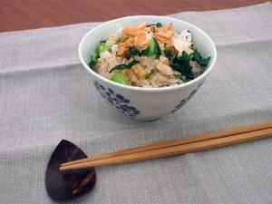 (4)鮭の皮と骨を外し、ほぐしたら(3)のボウルに入れて混ぜる。