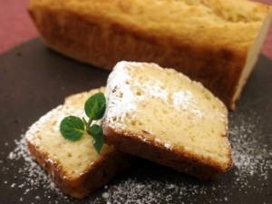 (6)カットして器に盛り付け、粉糖をふり、ハーブを飾る。