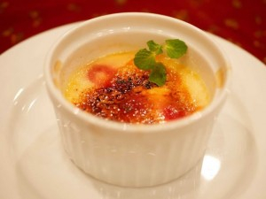 (6)食べる時に表面にグラニュー糖振りバーナーで焼いてキャラメリゼする。