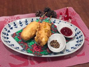 (4)170度に熱した油でキツネ色になるまで揚げて、油を切り、皿に盛る。