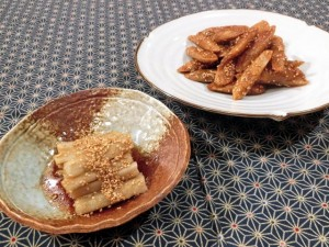 ゴボウの黒酢漬けとゴボウの旨辛から揚げ