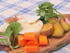(5)すべてが温まれば完成!カマンベールをスプーンでくりぬき、焼いた食材をつけながら食べましょう!