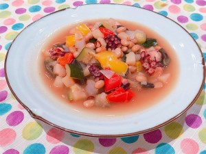 タコと夏野菜の甘辛豆煮