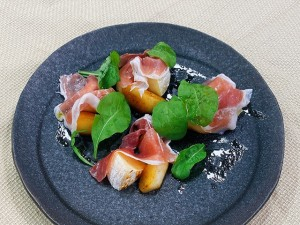 ※みずみずしい梨をキャラメリゼすることで、生ハムの塩味に負けない程よい甘さになり、バランスがよくなります。