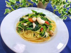 ※ソースの具材をすべて合わせて加熱することで、ほうれん草の甘み・セリの苦み・トマトの酸味・タラの旨味が合わさった美味しいソースに仕上がります!