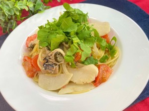 ※すりおろした小カブがソースのとろみになり、スパゲッティとよく絡みます!