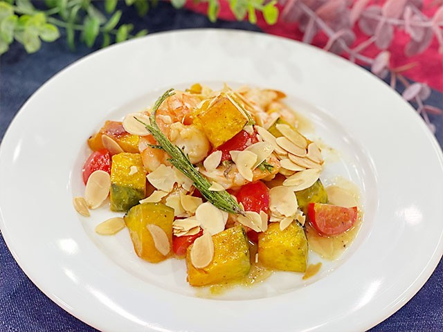 エビとカボチャのローズマリー風味