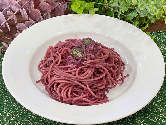 ※ソースを吸わせることで、スパゲッティに赤みが加わって、スパゲッティが酔っ払っているような見た目になりますよ!