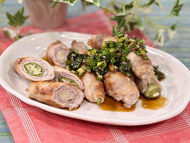 夏疲れ解消!オクラとえのきの肉巻きニラソース