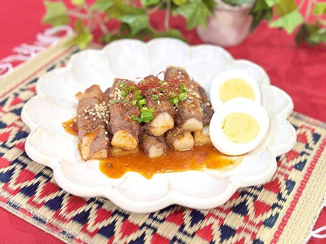 かんたんトッポギ風!おもちの甘辛牛肉巻き
