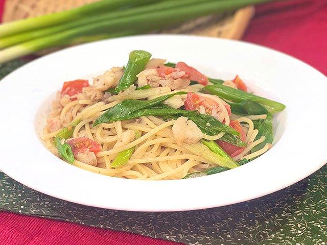 タラと観音ネギのスパゲッティ