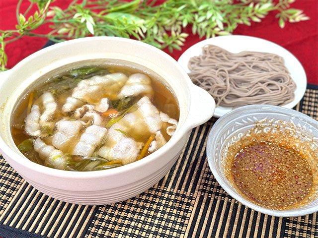 シメは蕎麦!?千切り野菜と豚しゃぶ肉のお鍋