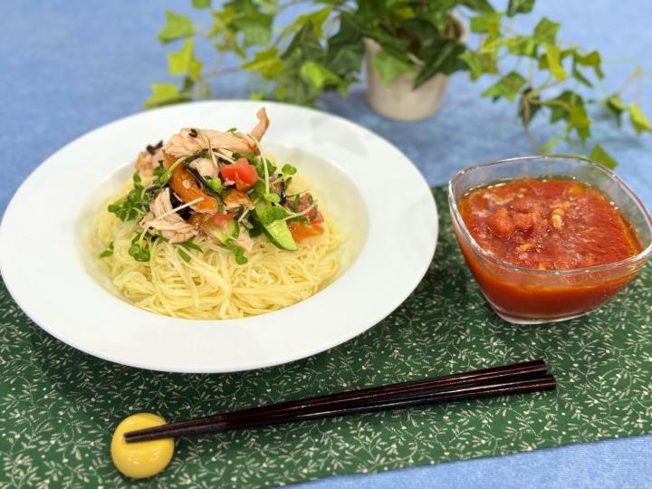 さっぱりトマトつゆのつけパスタ