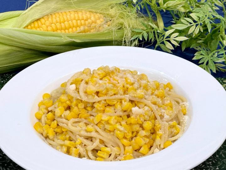 ※旬のトウモロコシを丸ごと使ったパスタです!トウモロコシの芯を使うのもポイントですが、トウモロコシの甘い味わいとアンチョビの塩気のバランスがとれたパスタです!