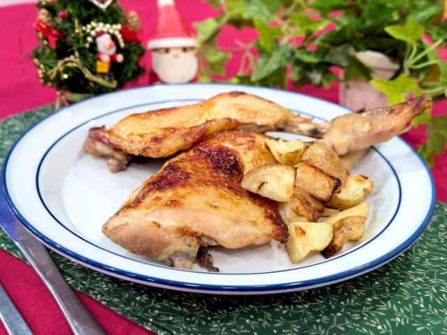 ※ジャガイモを肉の近くに並べて鶏肉のうま味を吸わせるように焼きましょう!