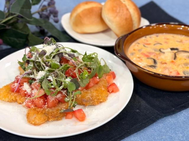 豚肉のカツレツとキノコのクリームスープ