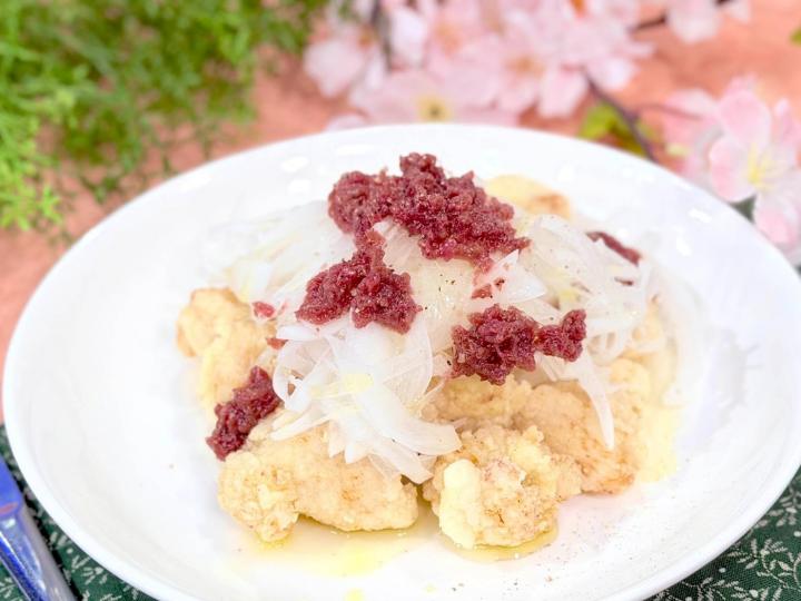 鶏ムネ肉のから揚げ新タマネギと梅のヴィネグレットソース