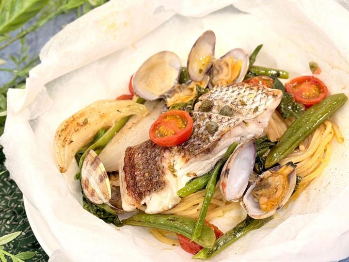 鯛と春野菜 アサリのカルトッチョ
