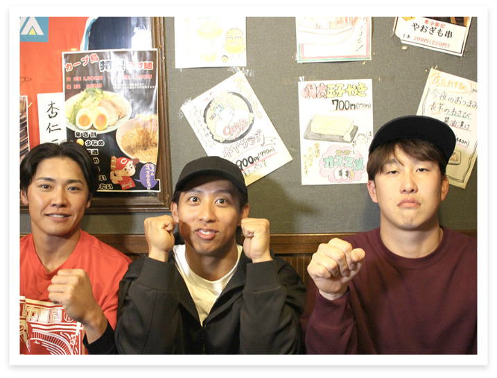 小園・羽月・久保の同学年トリオがファンの集う有名店に客や店員に扮して極秘潜入。攻める小園は自身の応援歌を熱唱。珍行動連発でファンがざわつく!果たしてバレずにミッションをクリアできたのか?そして佐々木・佐藤・岡本・渡邉のルーキーたちは、ボウリング対決やカラオケで絆を深めるミッションに挑戦します。 スポラバ公式SNS