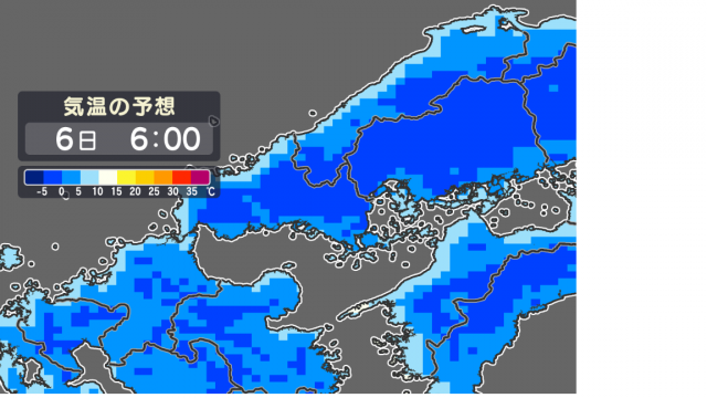 25.12.05(金) 週末の天気 あすからの週末は・・・あす土曜は高気圧に覆われて晴れるため朝の冷え込みが強まります。北部や内陸部を中心に氷点下4度前後まで下がってきますので注意をしてください。日中は10度を超えて、日差しの温もりが感じられるでしょう。日曜は全般に雲が多くなり北部では雪や雨の降る時間が出てきます。ただ、暖かい空気が入ってくるため、日中の気温は高くなります。南部を中心に15度を超えるところも出て、比較的過ごしやすいでしょう。今週は初雪や初冠雪も観測されるなど、冬本番の寒さになりました。この先来週にかけても気温のアップダウンが激しくなりますので引き続き、体調管理を徹底していきましょう。気象予報士 田代香子 バックナンバー一覧へ カテゴリ 全て きょうのひとこと 天気 洗濯小ネタ weblog 空 自然 防災・災害への備え エコ・環境 バックナンバー 25.12.05(金) 週末の天気 25.12.04(木) あすの朝も積雪&路面の凍結に注意 25.12.02(火) 県北は「積雪」の可能性あり! 25.12.01(月) 12月です・・・ 25.11.28(金) 週末の天気 25.11.27(木) あすにかけて黄砂に注意 25.11.25(火) 忙しくなってきました 25.11.24(月) よくある質問 25.11.21(金) 3連休の天気 25.11.20(木) 乾燥続く バックナンバー一覧 最新の天気 最新の天気概況 広島県の天気 現在の雨雲の様子(気象レーダー) 今後の雨雲の動き(降水短時間予報) 天気(今日・明日・週間) 予想気温 降水確率 波の高さと風 ポイント予報 雲の様子 天気図