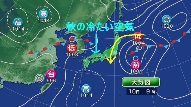 台風の反時計回りの風によって、この“秋の空気”を日本に引っ張り込むのです…
