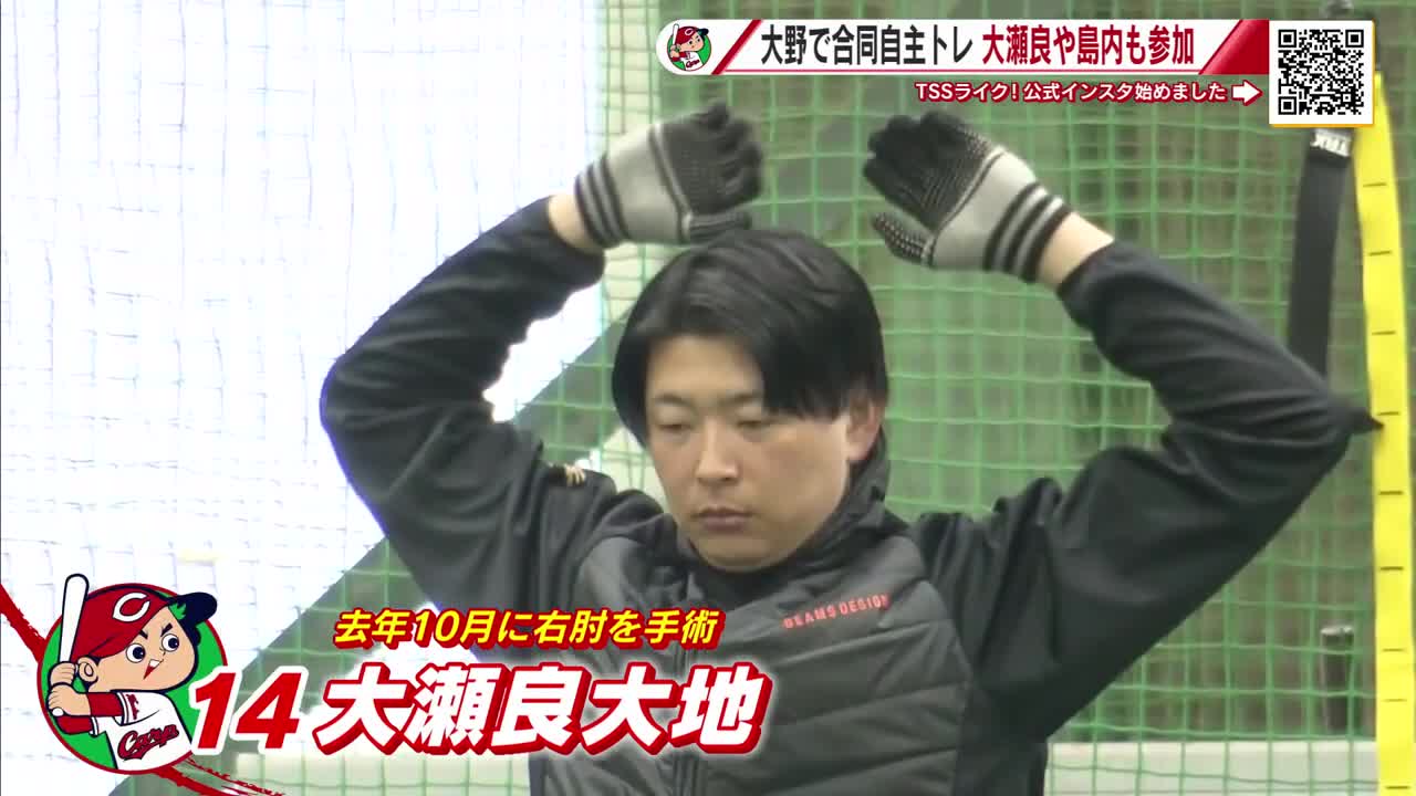カープ合同自主トレ 新人・ベテラン30人が参加 右ひじ手術の大瀬良投手「普通にキャンプインできる」