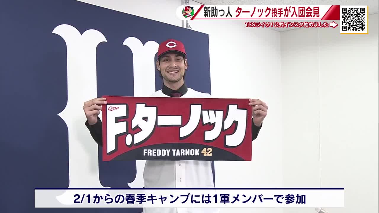【カープ】新外国人 ターノック投手が入団会見 193センチの長身から多彩な球種を操る