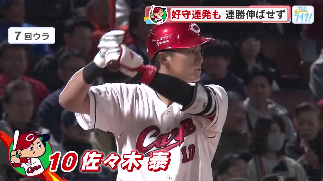 【カープ】8日 守備で光るプレー続出も、巨人に逆転負け 連勝伸ばせず