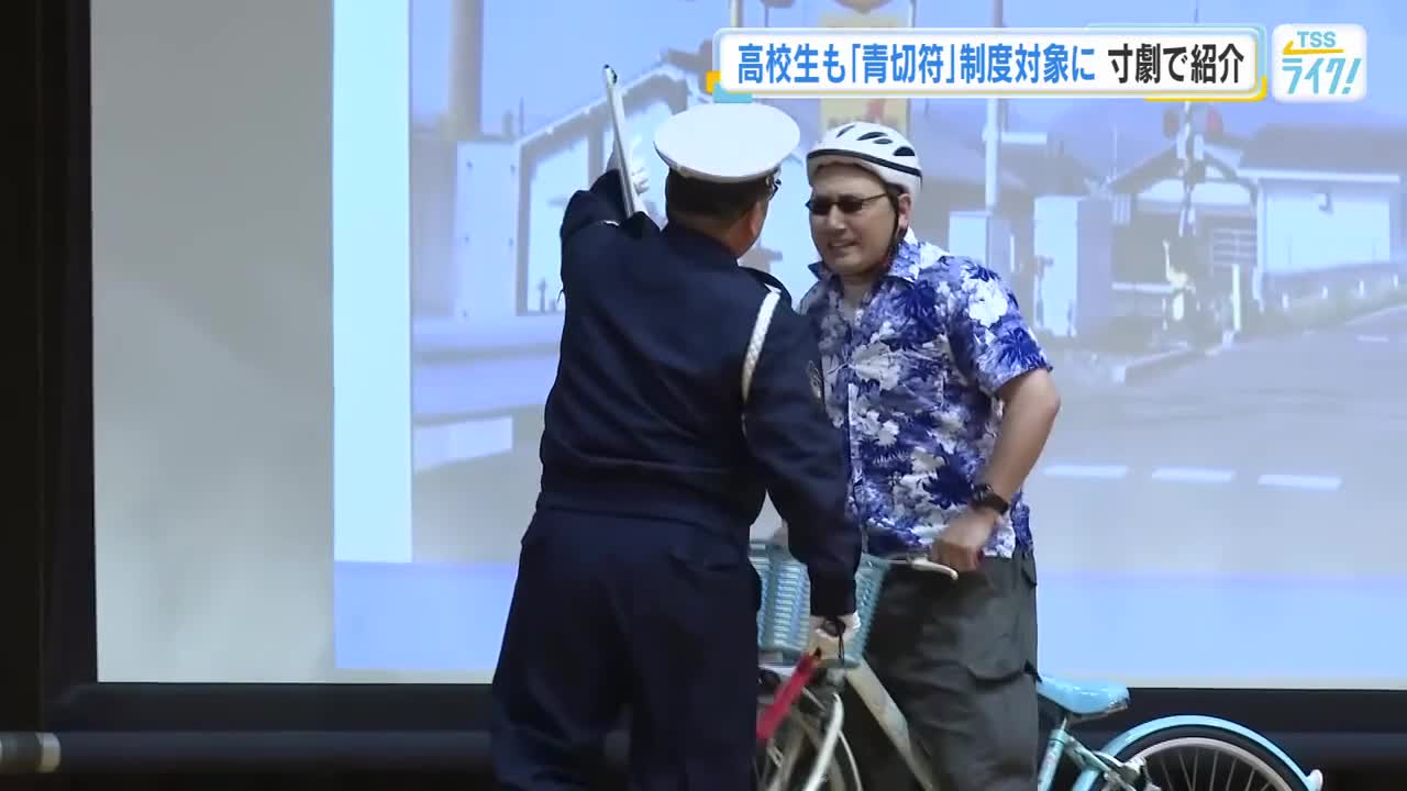 高校生も『青切符』制度対象に 警察官が寸劇で説明 詐欺被害も注意喚起 広島・福山市