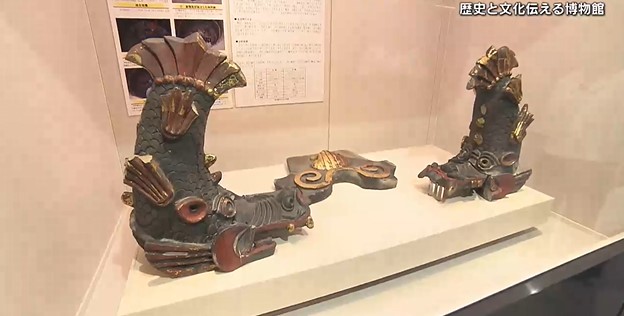 オス・メス一対の金箔張りの鯱瓦がほぼ完全な形で発見されたのは、全国で初めてのことでした。