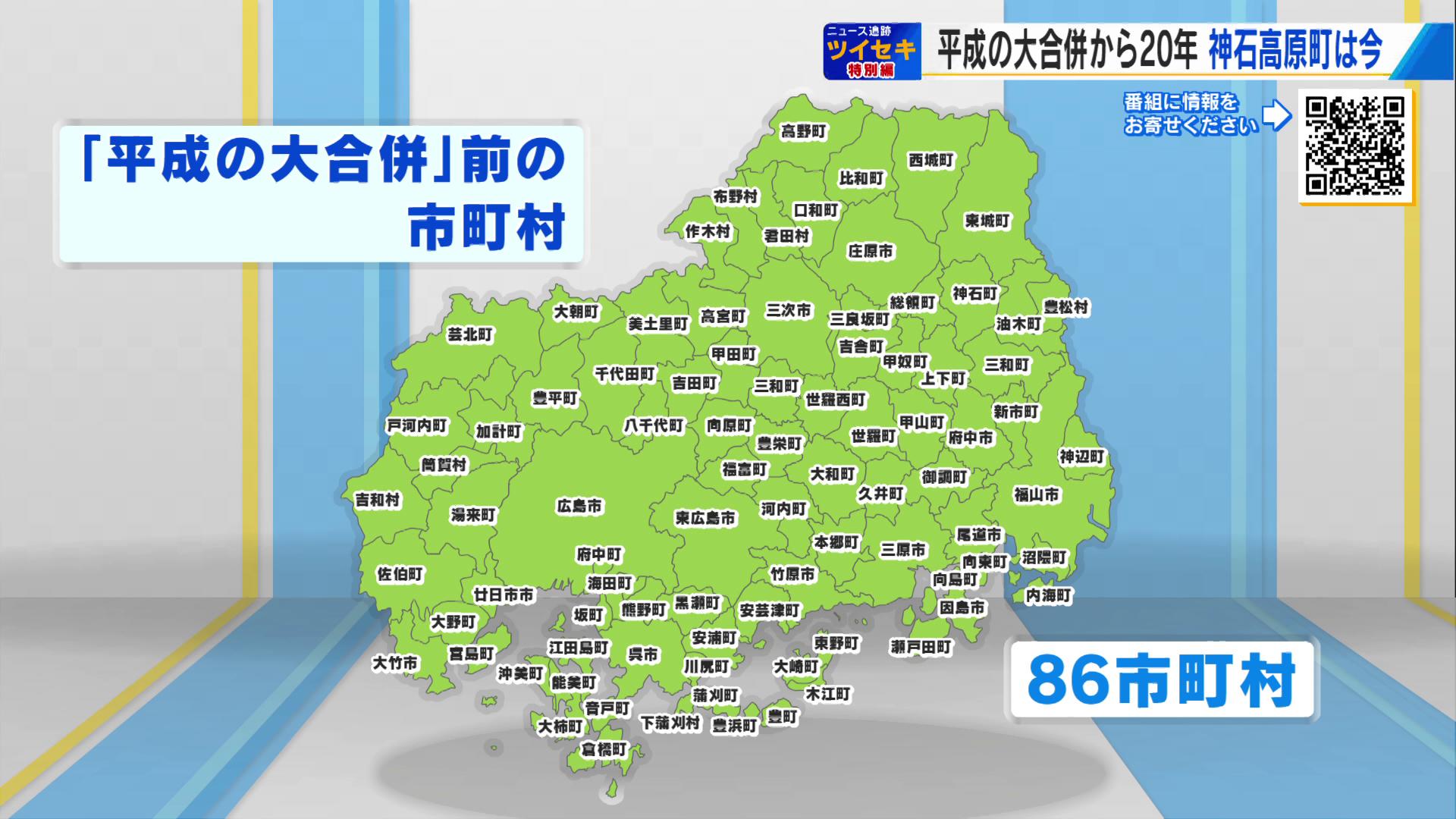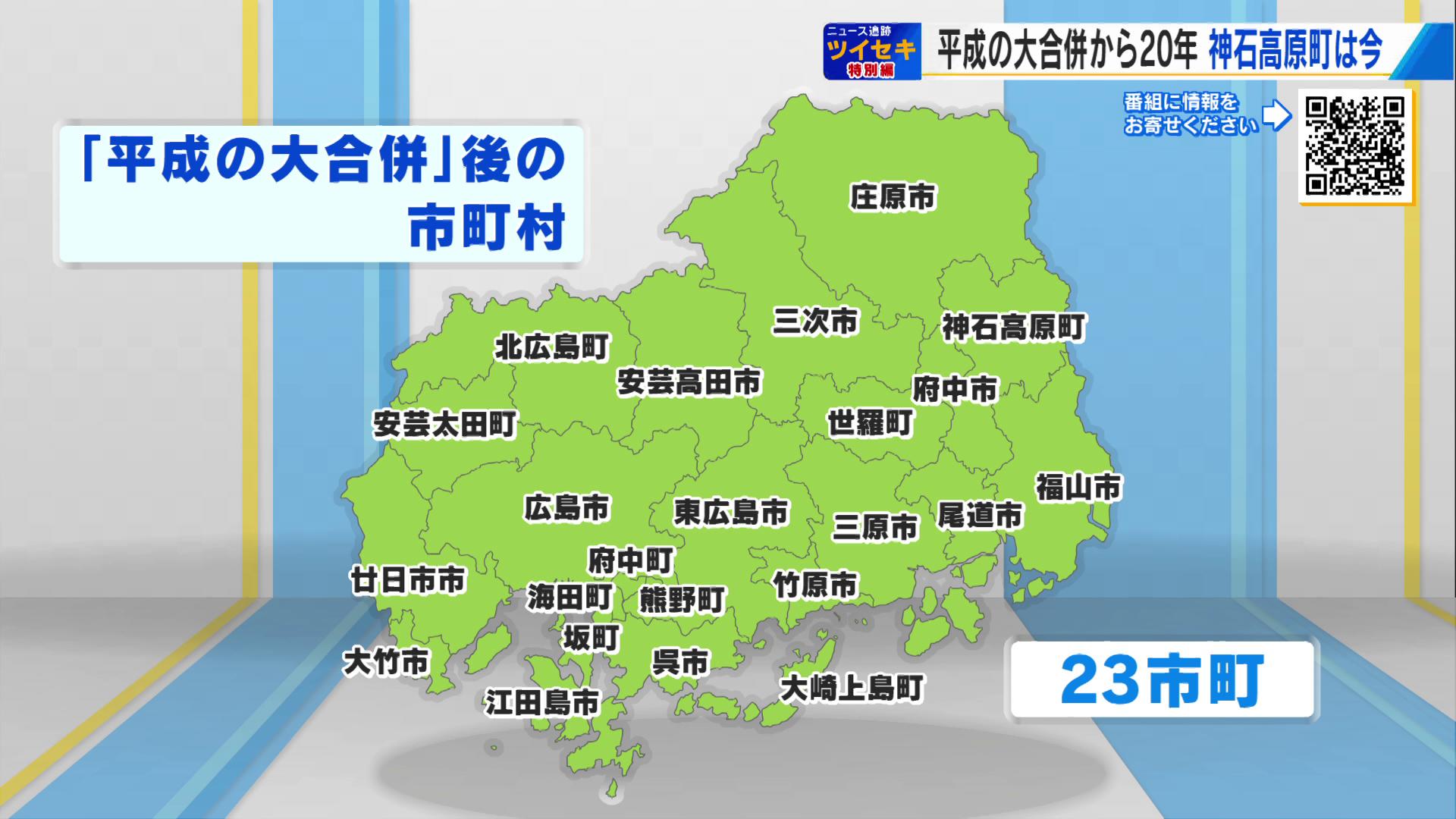 テレビ新広島開局50年に合わせてお届けしている「あのニュースは今」。隣接する市町村を合体させた「平成の大合併」を取り上げます。あれから、およそ20年。合併先進県でもある広島県の現状と課題を県東部の町で探りました。