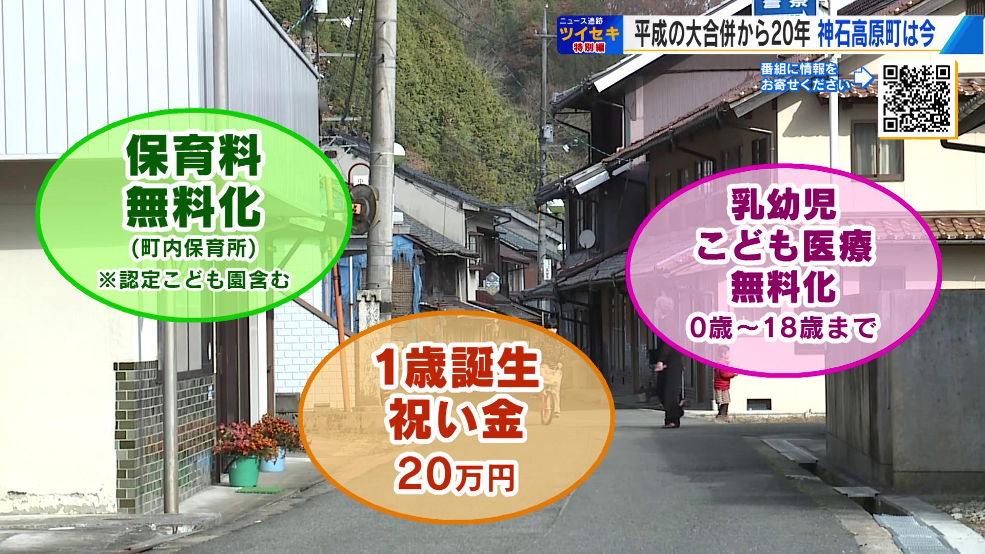 町内の保育所の保育料は完全無料化にするとともに、1歳の誕生日を迎えた子供に20万円の祝い金を支給。高校生までの医療費を無料化にするなど、子育て支援を充実させています。