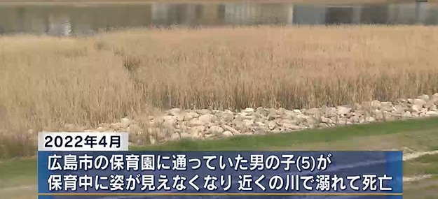 2022年4月、広島市の保育園に通っていた5歳の男の子が保育中に姿が見えなくなり、その後、近くの川で溺れて死亡。