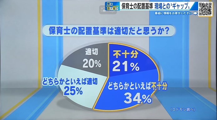 また「保育士の配置基準は適切だと思うか」の質問には半数以上が「不十分」と回答しました。