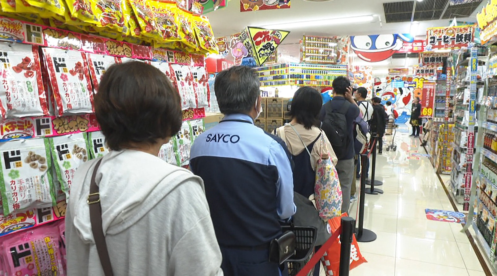 「レジの列が、ずら~っとできるほどたくさんの人が買い物をしています」