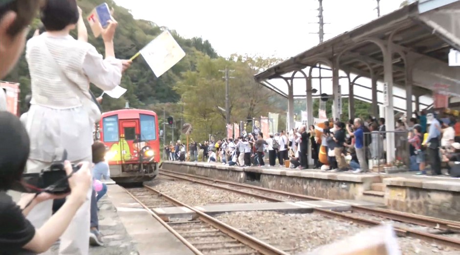 イベントに参加する多くの乗客を乗せた臨時列車も到着し、地元住民らの熱烈な歓迎を受けました。