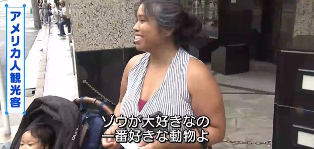 「すごくかわいい。ゾウが大好きなの。一番好きな動物よ。アメリカでは日本より子供連れで移動しすい」