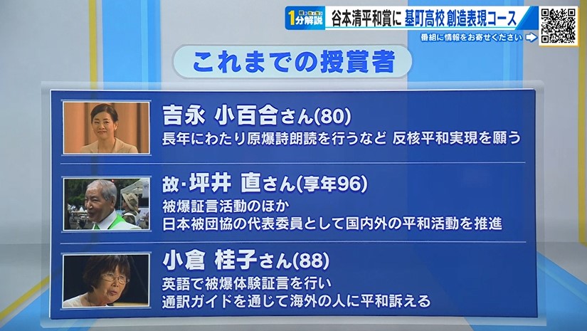 平和活動に貢献した、個人や団体に贈られる「谷本清平和賞」に、今年は「原爆の絵」を描き続けている、広島市立基町高校の創造表現コースが選ばれました。